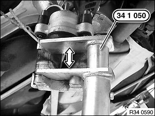 - Position special tool 34 1 280 at three measuring points in area (1) and measure.