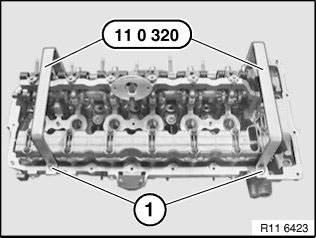Secure special tool 11 0 320 with existing cylinder head cover bolts (1).