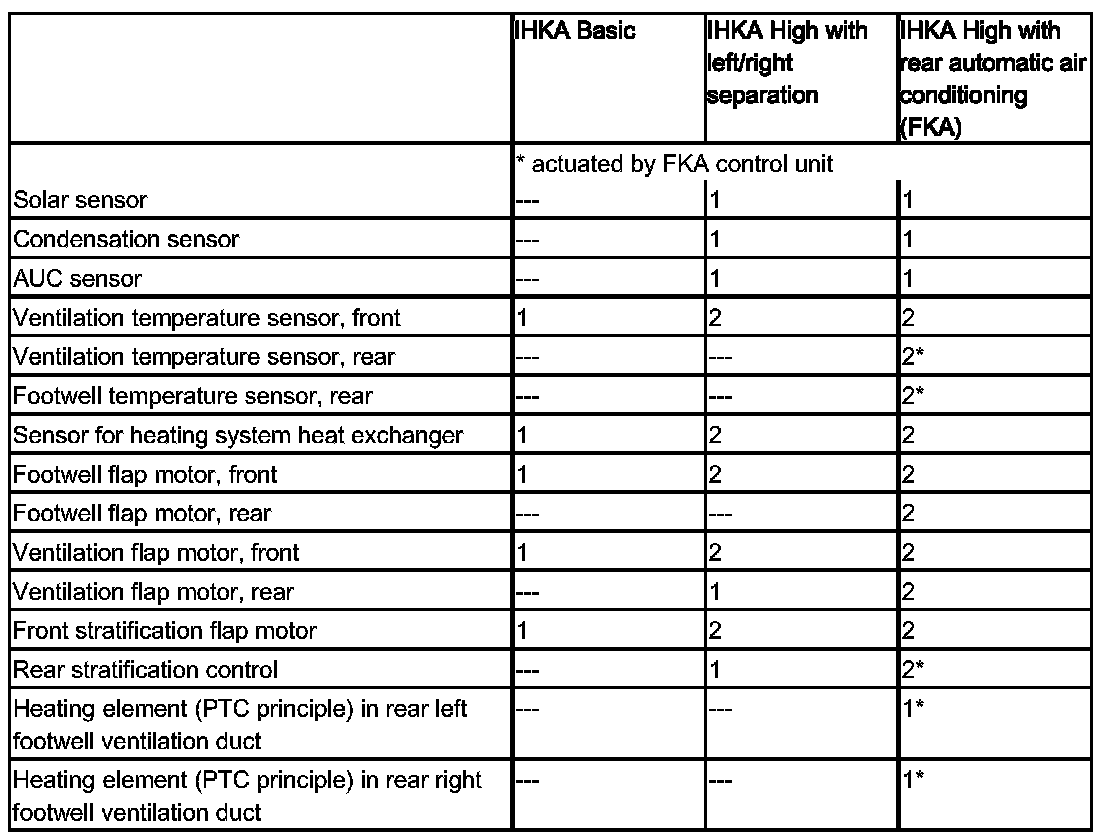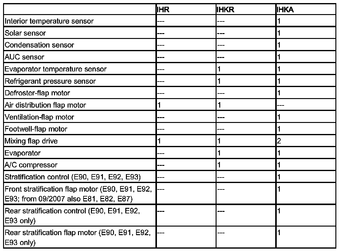The E90, E91, E92, E93 are equipped as standard with the integrated heating and air-conditioning control (IHKR). The integrated automatic heating/air-conditioning system (IHKA) is available as special equipment (option 534).