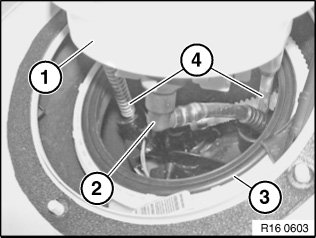 Carefully lift fuel pump with fuel level sensor (3) out of fuel tank. If necessary, turn fuel pump 90° anticlockwise and tilt towards lever sensor.