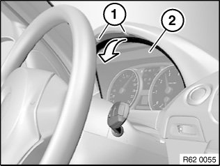 Pull instrument cluster (2) forward slightly in direction of arrow.