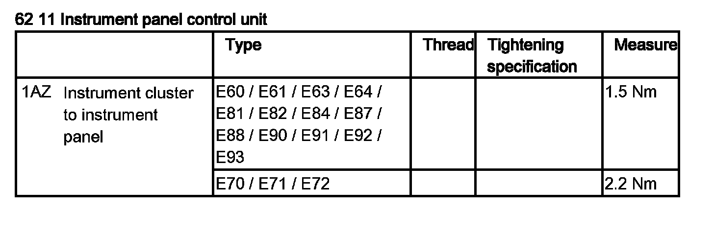 62 11 280 Removing And Installing (Replacing) Instrument Cluster