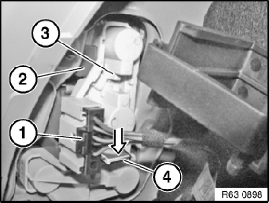 Unlock locking clip (4) in direction of arrow and remove socket housing (3) from rear light (2).