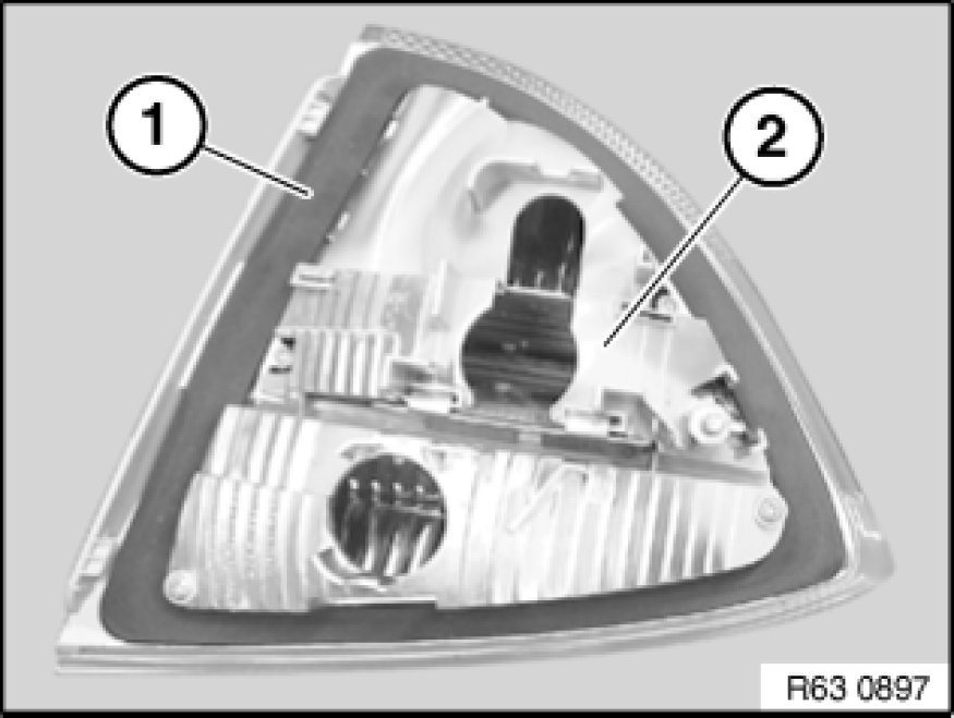 Make sure sealing frame (1) is correctly bonded all round on rear light (2).