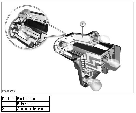 Vibrations can be transferred to the bulb via the bulb holder, thus damaging the bulb. The graphic below depicts the attachment of a sponge-rubber strip to the bulb holder in order to rectify this fault.