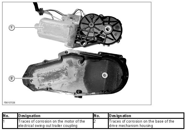 A possible cause for this fault pattern can be that water has entered through a faulty (squashed) sealing ring into the drive mechanism of the trailer coupling. Water can also enter the drive mechanism at the cable entry point