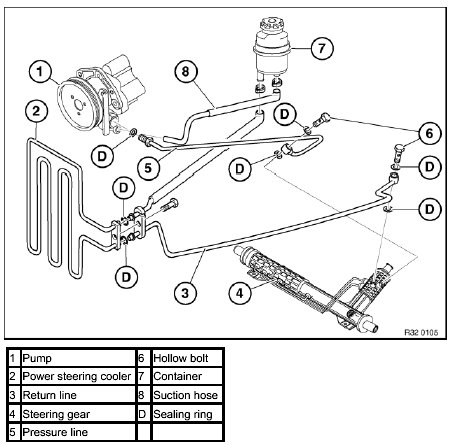 Check all visible connections, hoses, lines and steering gear for traces of fluid.