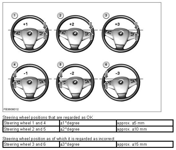 The main complaint in chassis adjustments is the steering wheel position. The difficulty is the driver's subjective perception of the steering wheel position when driving straight ahead. Observe here that the driver's perception of the actual horizontal position of the steering wheel can deviate. This deviation is mainly dependent on the design and installation tolerances of the dashboard, operating levers, etc.