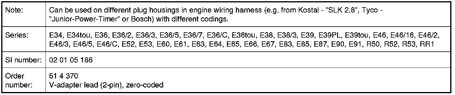 61 4 370 V-adapter lead (2-pin), zero-coded