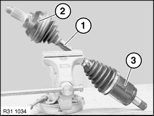 31 60 535 Replacing two gaiters on output shaft(s) (output shaft(s) removed)Grip output shaft (1) in vice with aluminium clamping jaws.