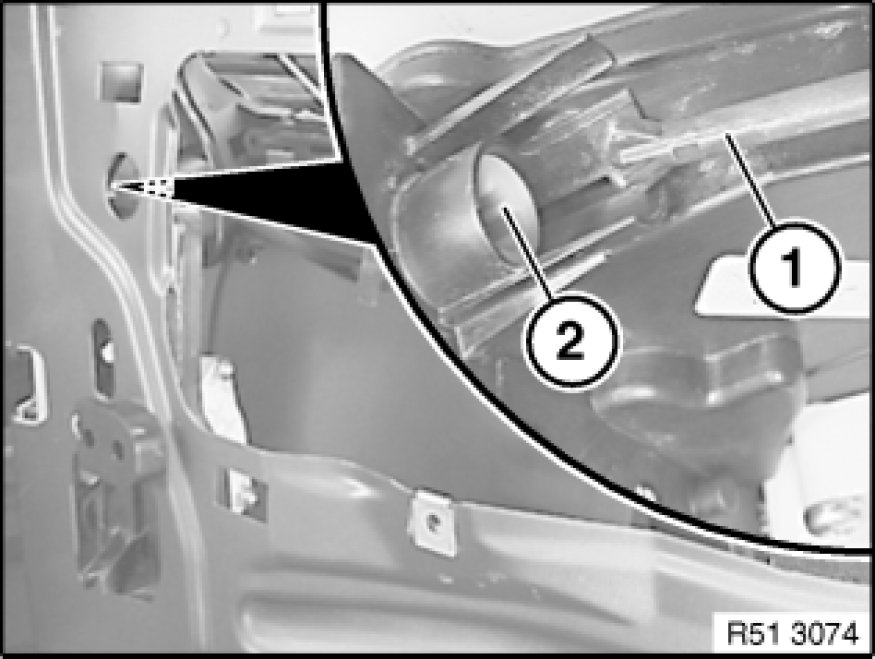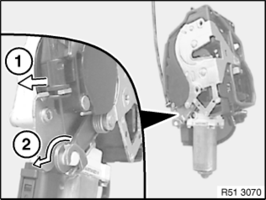 To avoid leakage and electrical malfunction, pull door lock with special tool 51 2 190 51 2 190 Door Lock Tensioner into corner (3), refer to next work step.