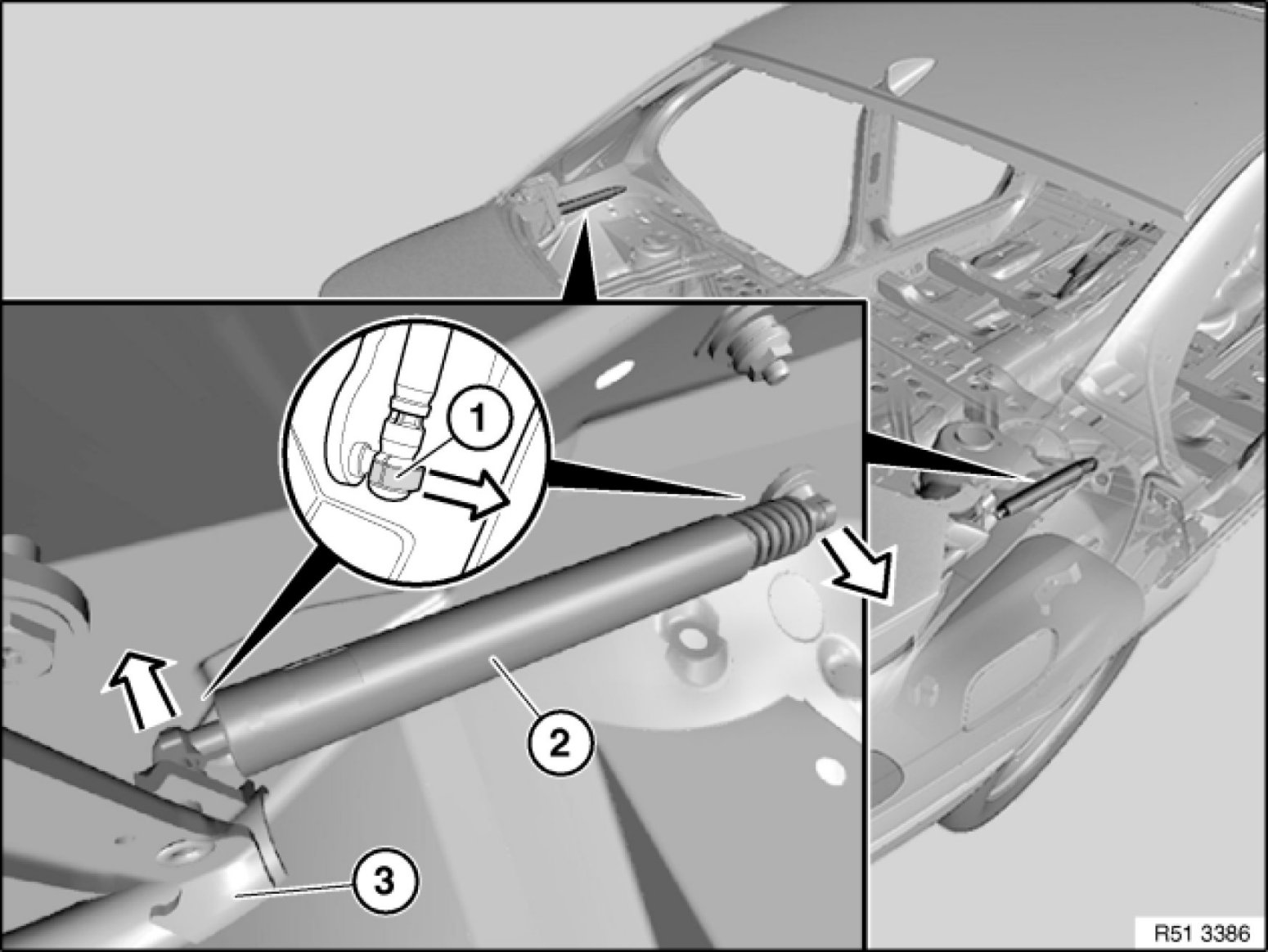 51 24 300 - Removing and installing or replacing left or right gas strut for rear lid