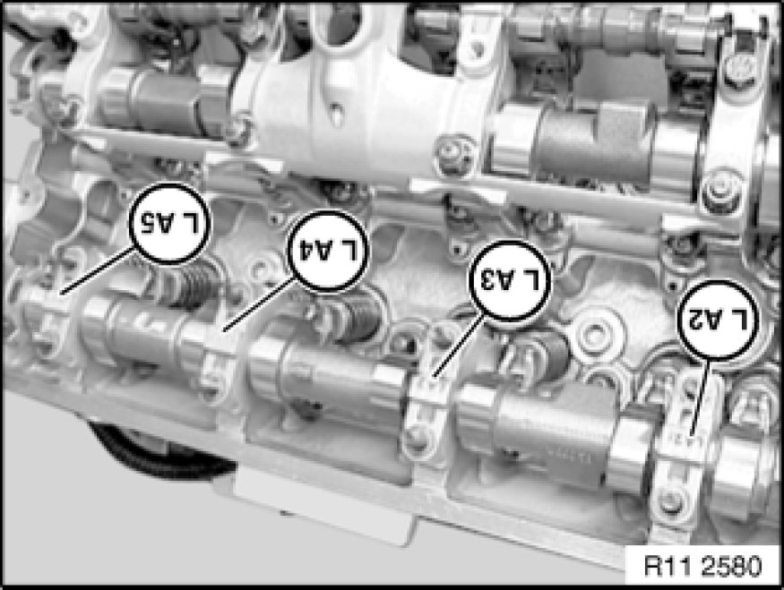 Bearing caps of exhaust camshaft are marked on cylinder bank 1 to 4 with L A1 to L A5 from inlet side.