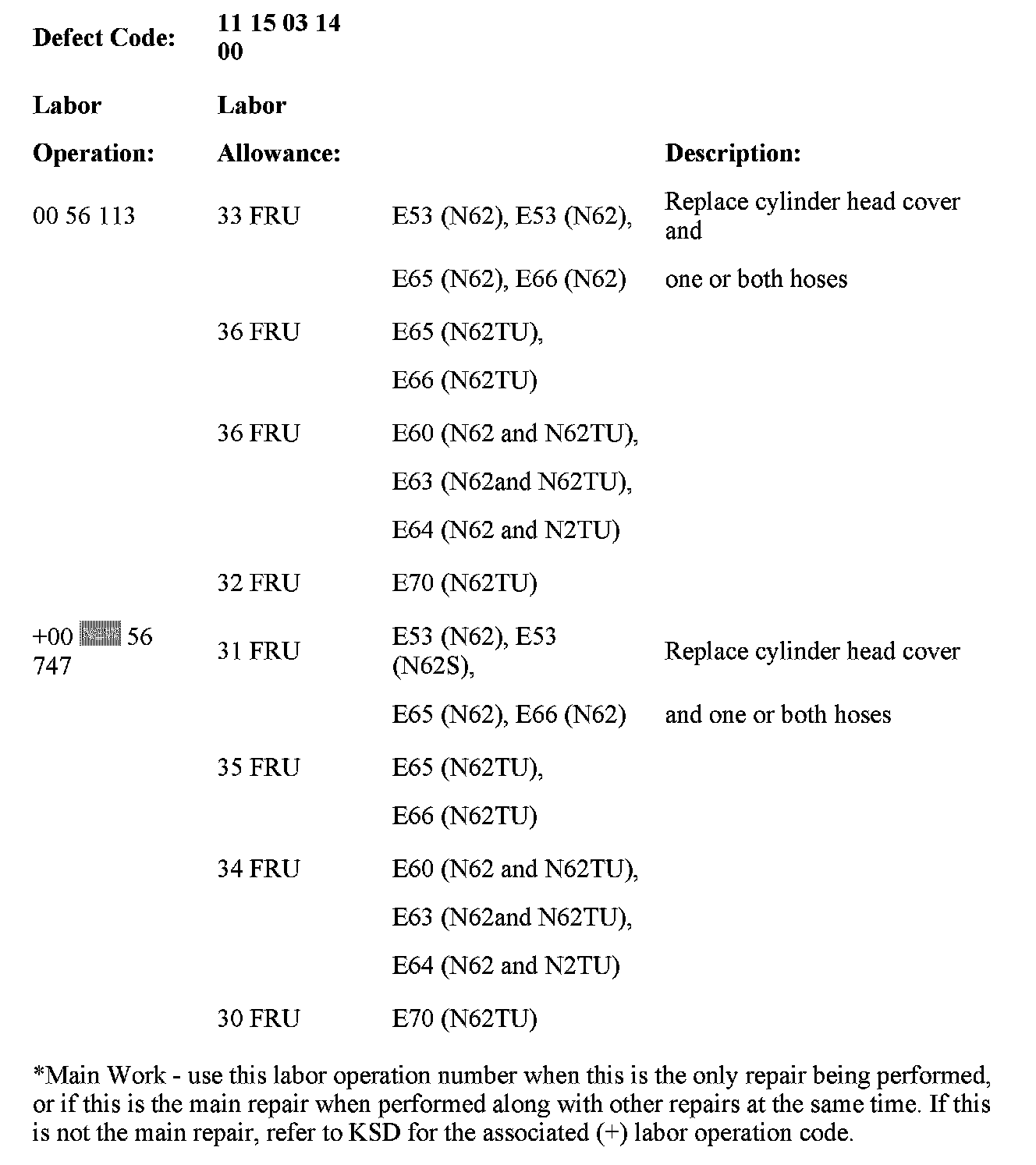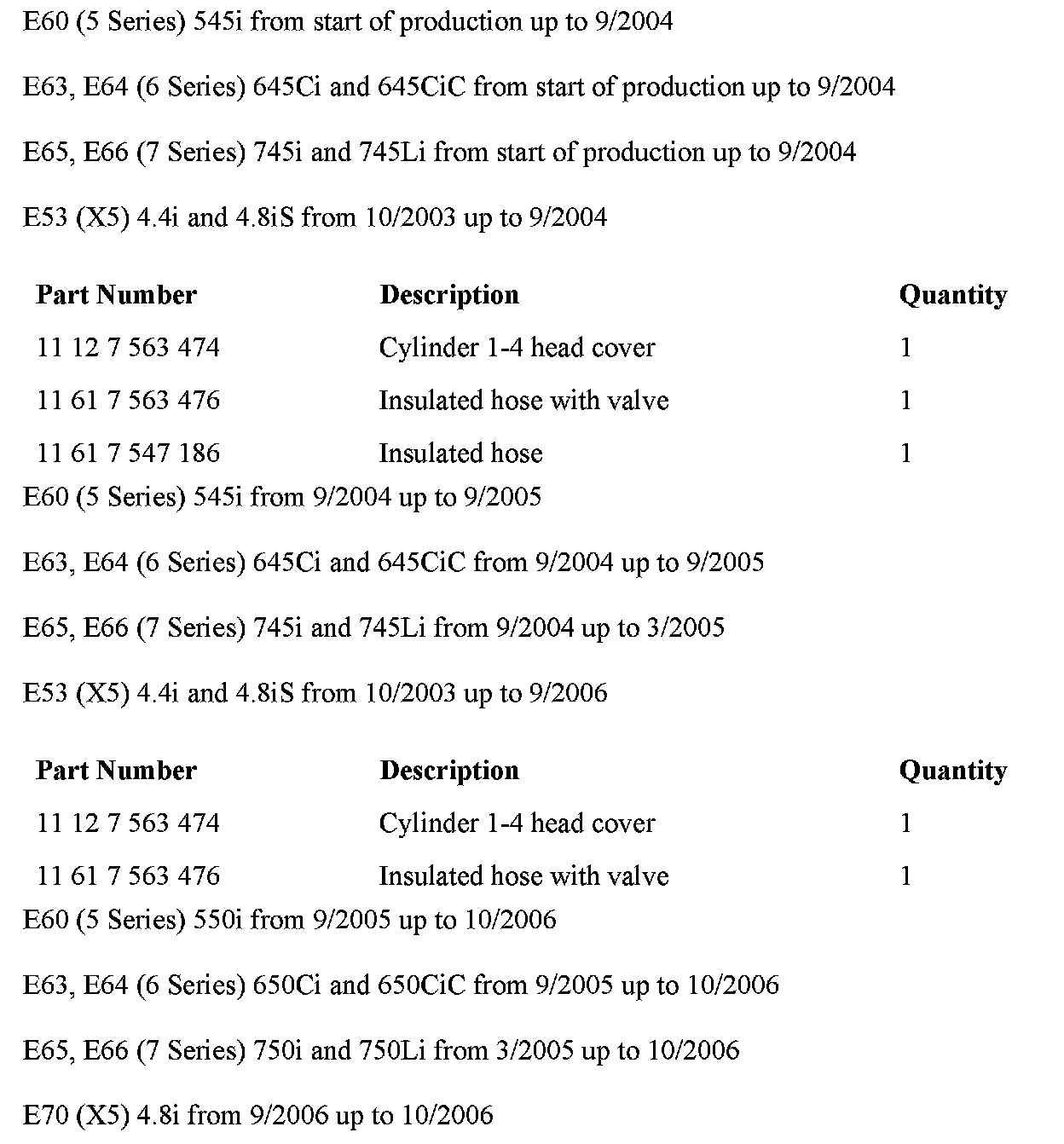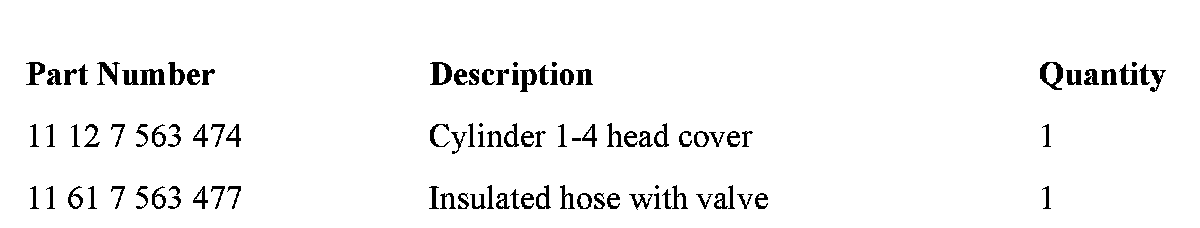 1. Replace the cylinder 1-4 head cover with P/N 11 12 7 563 474 with the updated crankcase ventilation valve.