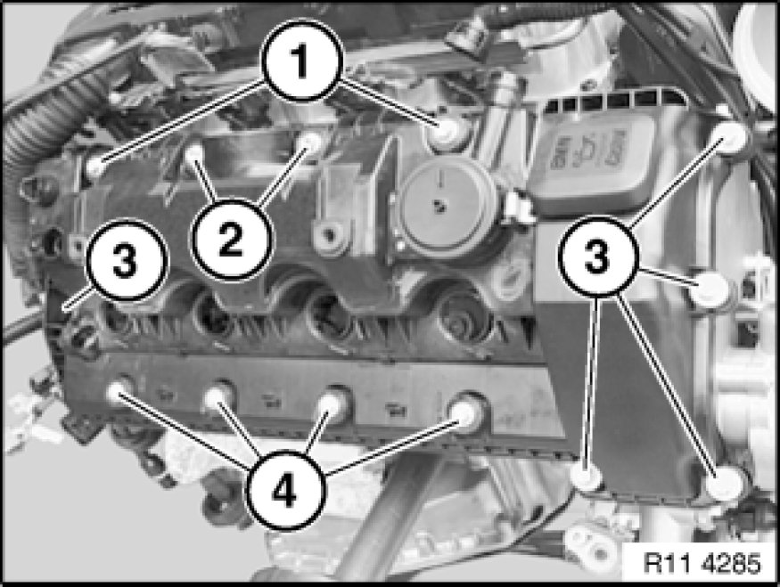 Screw connections (1, 2, 3 and 4) of cylinder head cover are different.