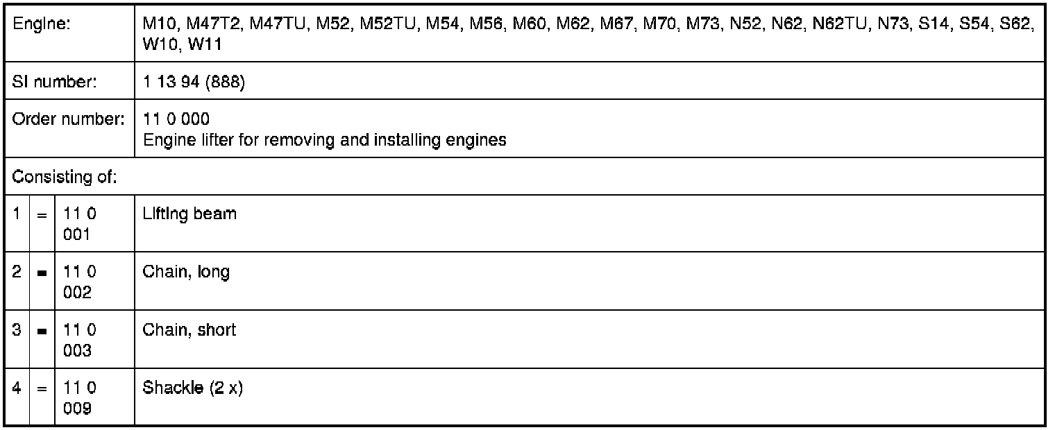 11 0 000 Engine lifter for removing and installing engines