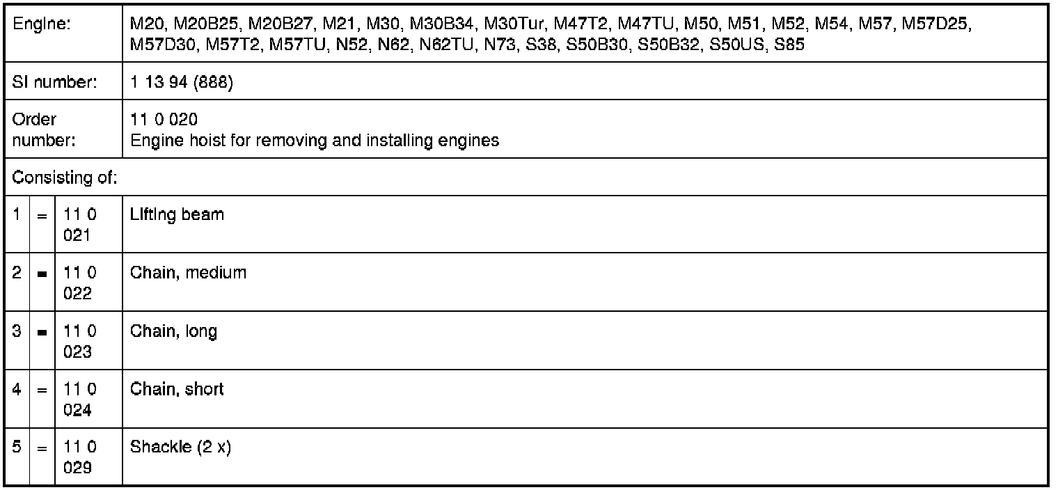 11 0 020 Engine hoist for removing and installing engines