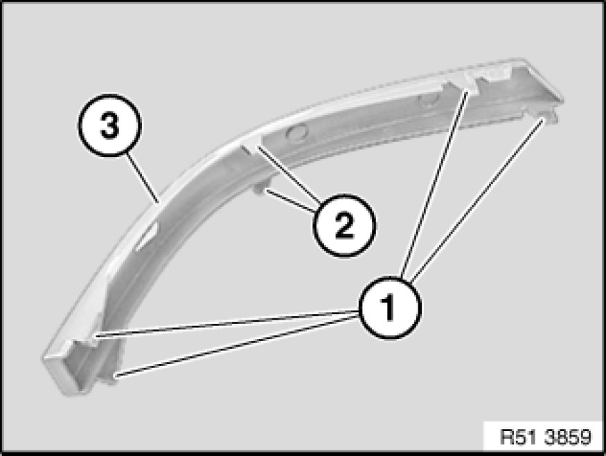 Catches (1) and guides (2) on trim (3) must not be damaged.