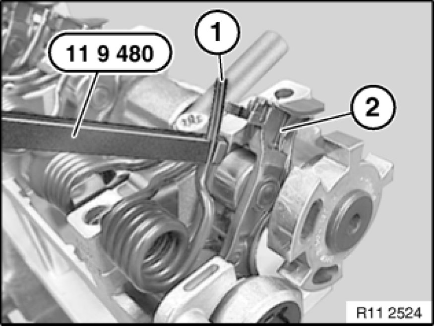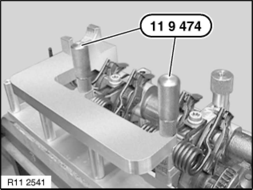 Special tools 11 9 472 11 9 470 Support and 11 9 475 11 9 470 Support prevent the inlet camshaft from rotating and moving while the intermediate levers are installed.