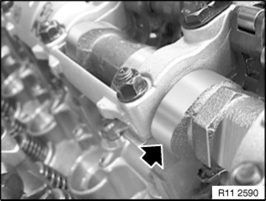 The inlet camshaft must first be rotated so that when the bearing bracket is removed the intermediate levers do not slip out and damage the camshaft.