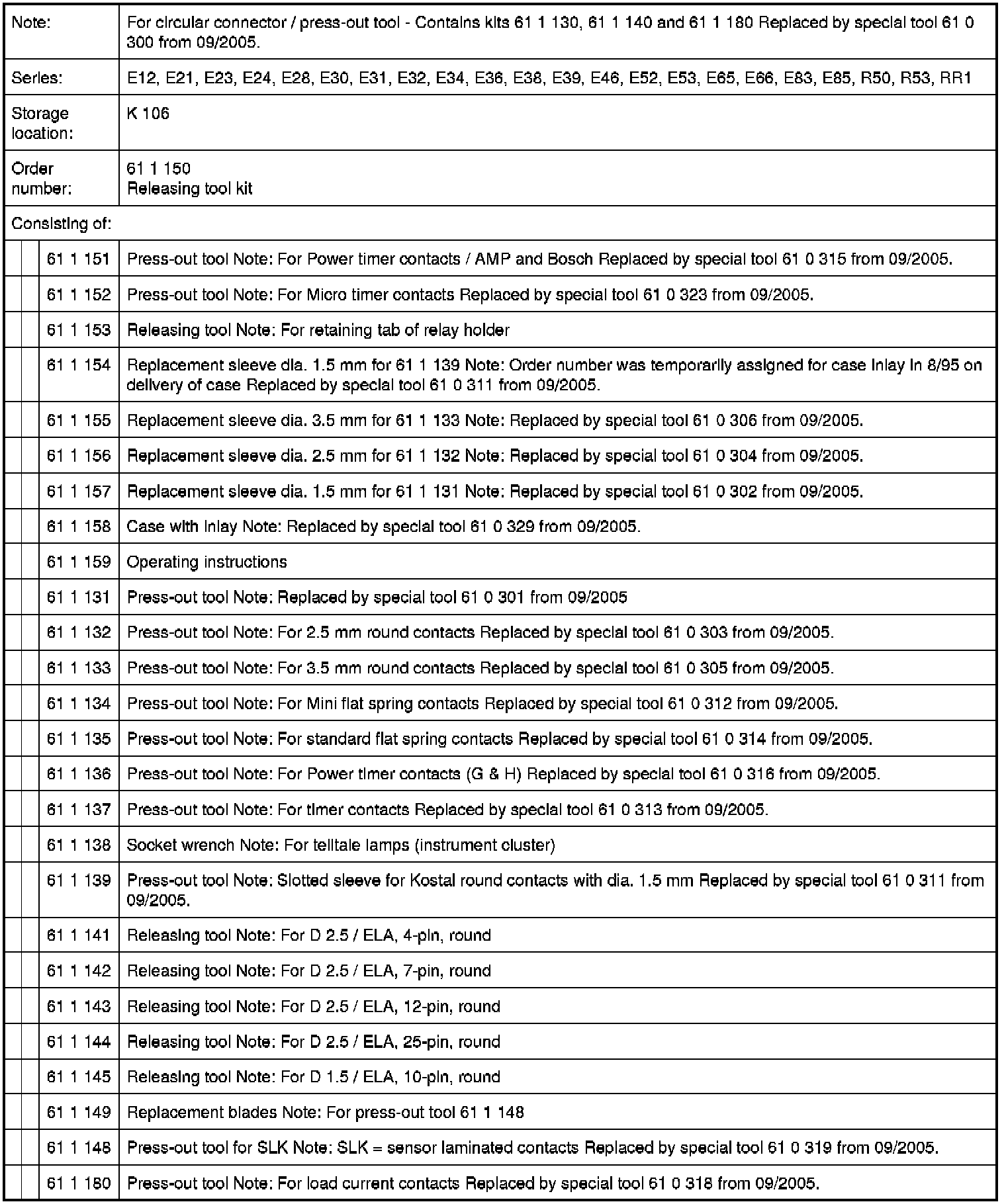 61 1 150 Releasing Tool Kit