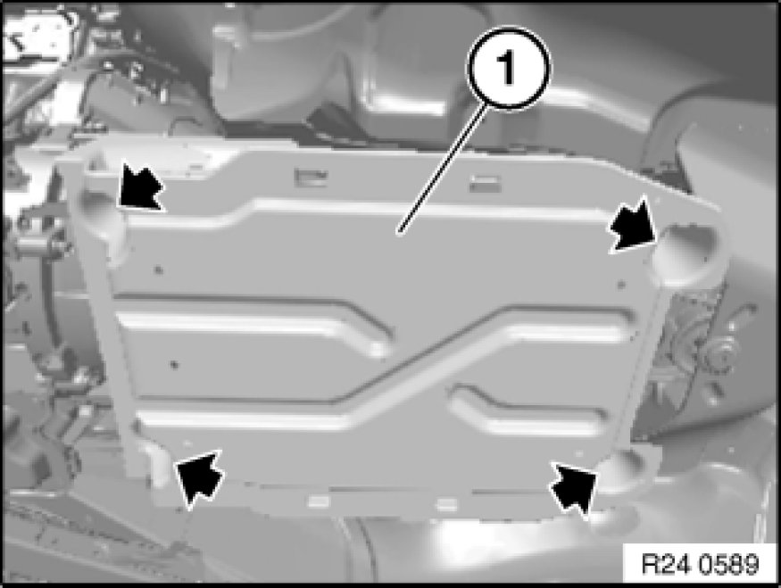 Release screws and remove underbody protection (1).