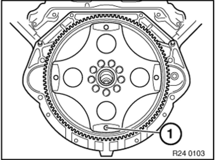 Bore (1) in driving disk must be accessible from opening on engine oil pan.
