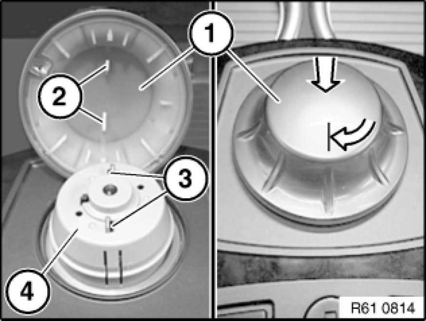 Positioners (2) of knob for controller (1) must engage in openings (3) of controller (4).