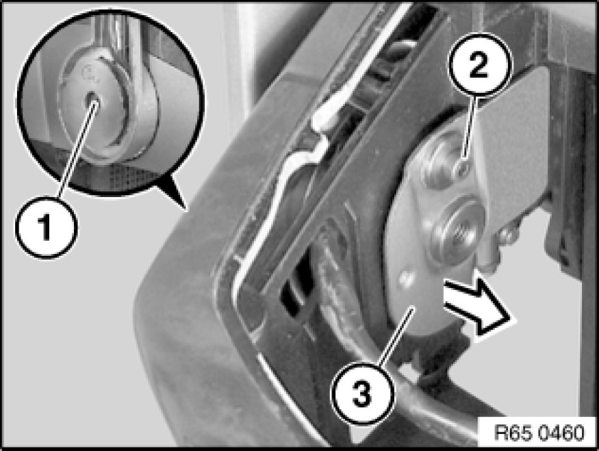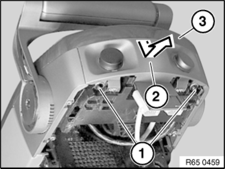 Release screw (2) and remove rear compartment monitor mounting (3) in direction of arrow.