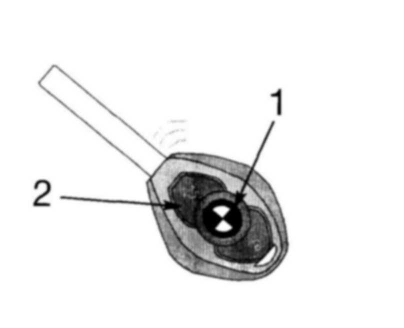 3. Remove the key from the ignition; press and hold button 2.