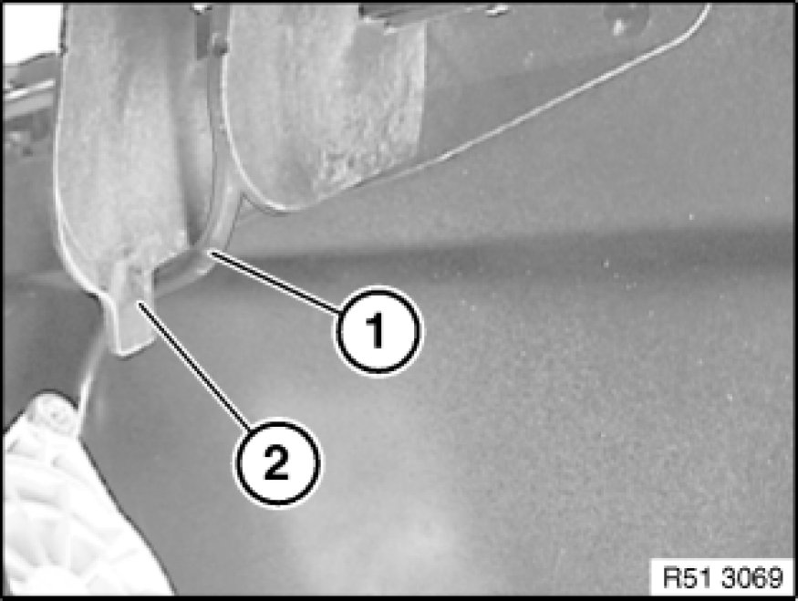 - Pretension door lock (1) with knurled screw (2) until special tool 51 2 190 51 2 190 Door Lock Tensioner just contacts corner points (3).