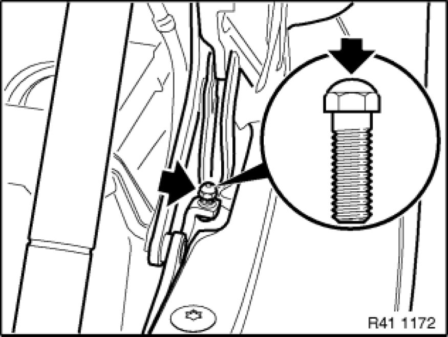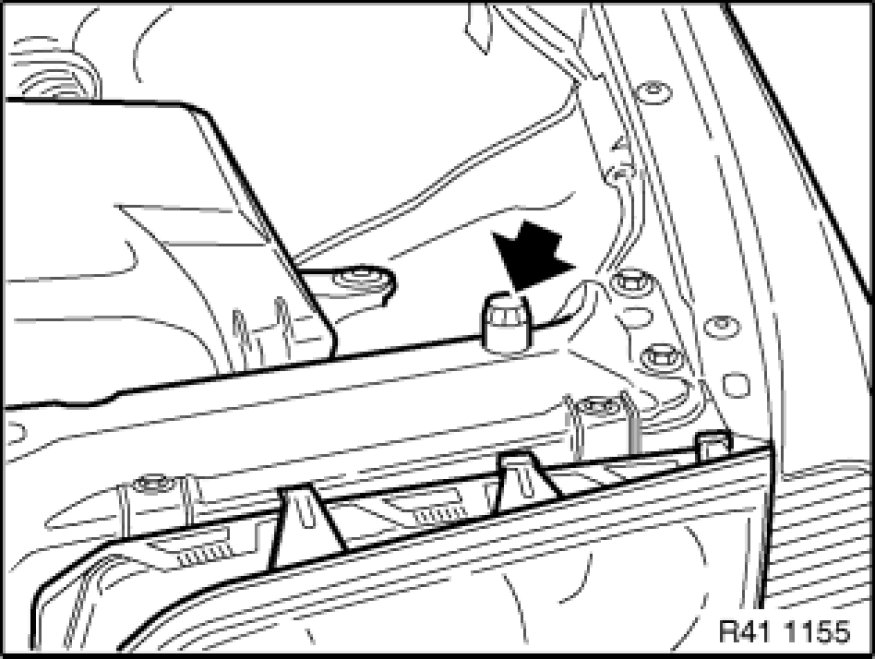 Plastic head of stop screw must not be damaged or missing, replace hood lid hinge if necessary.