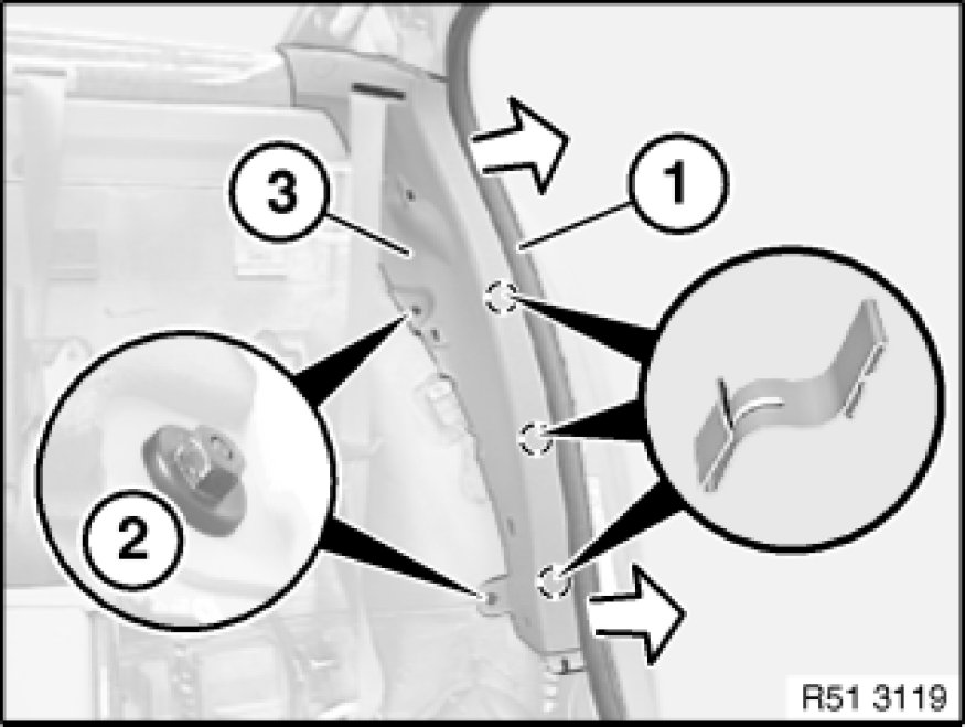 51 43 230 - Removing and installing / replacing trim on C-pillar at bottom left or right