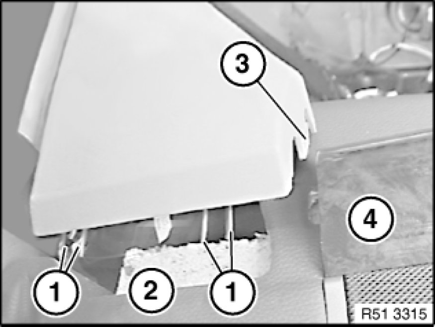 - Carefully insert special tool 00 9 317 00 9 317 Trim Panel Wedge between decorative strip (2) and side trim (1)