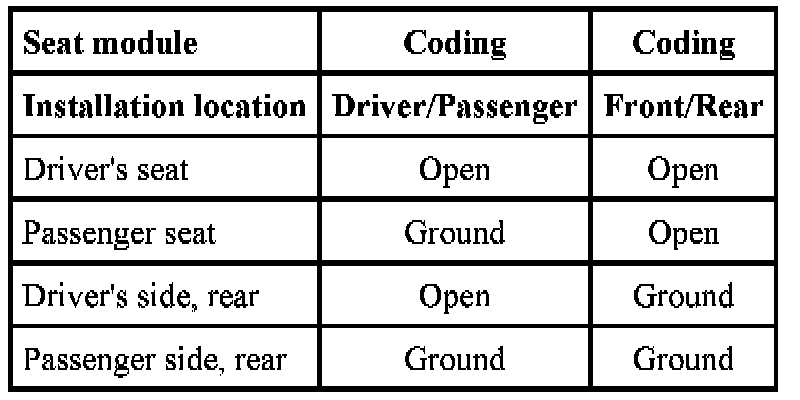 In addition to the fault memory, there is also an information memory for the seat modules. The following data is stored in the information memory: