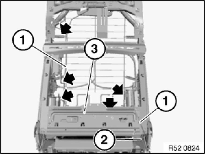 When replacing backrest or seat frame, break off centering hooks (1) from seat frame.