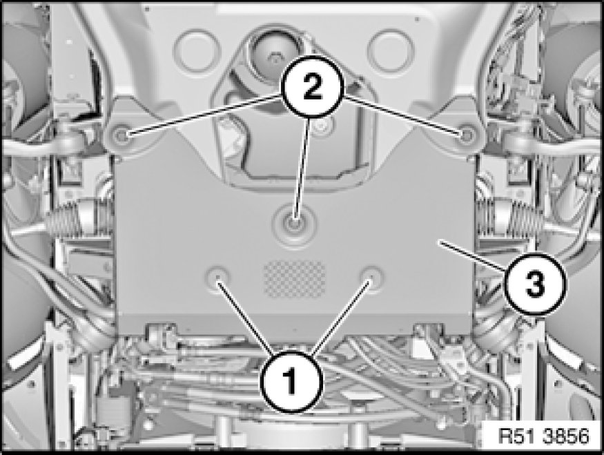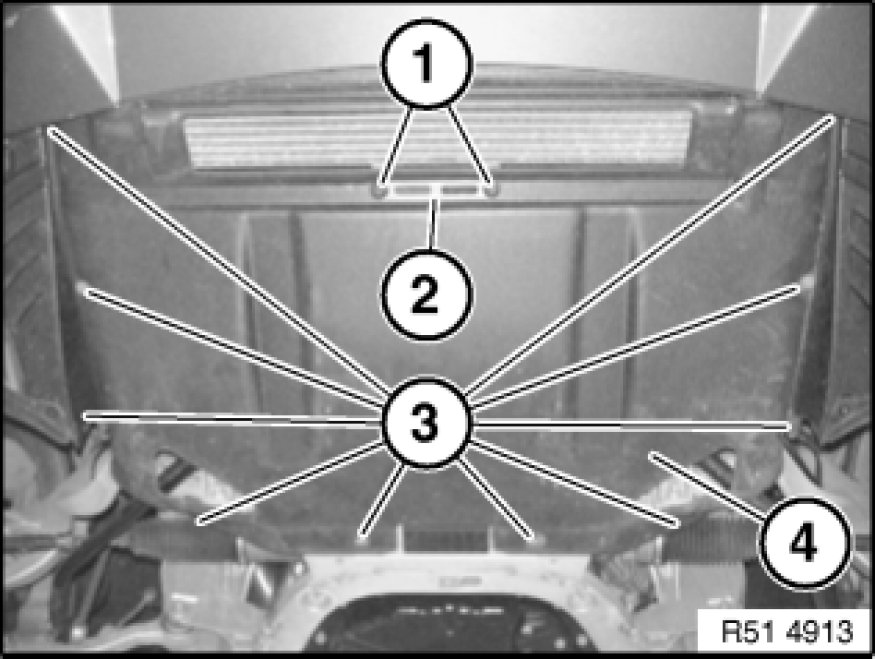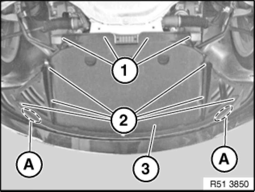 Release catches in area (A) and remove underbody protection (3) towards rear.