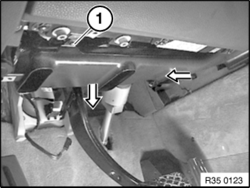 Remove panel for pedal assembly 51 45 185 Removing and Installing/Replacing Panel For Pedals.