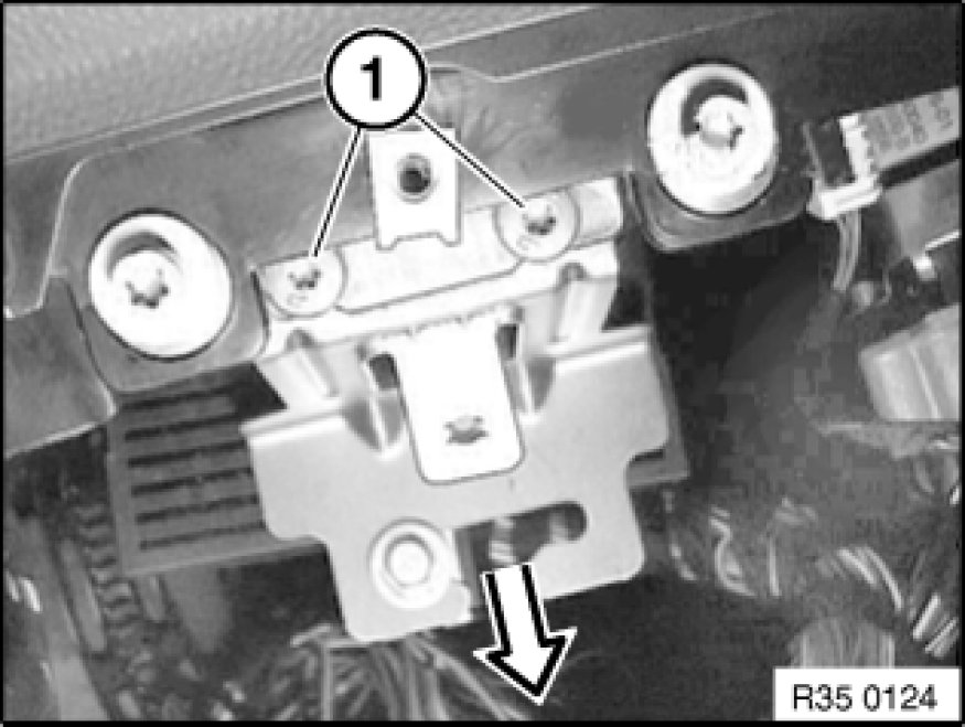 Release screw (1) on footwell air duct. First pull footwell air duct to left, then remove towards bottom front.