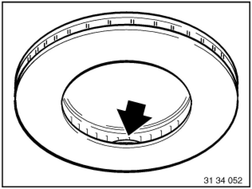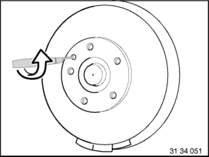 Clean contact surface of brake disc at wheel hub thoroughly and remove traces of corrosion if necessary. Unevenness on contact surface may result in distortion of brake disc!
