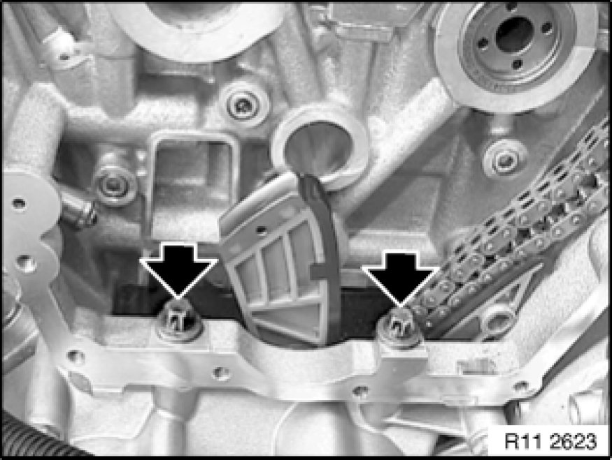 - Remove left timing case cover Removing and Installing Top Left Timing Case Cover (N73).