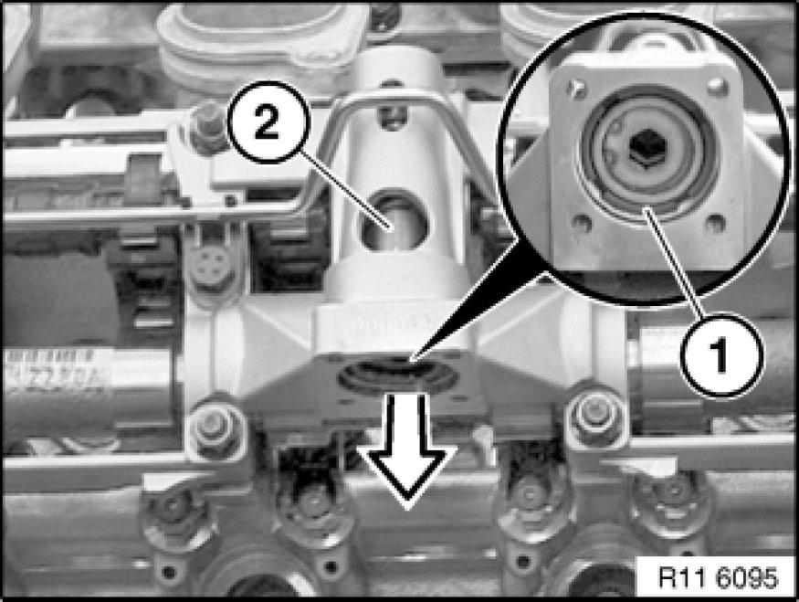 Remove screw connection (1) from Valvetronic drive with special tool 11 7 270 11 7 270 Pin Wrench.