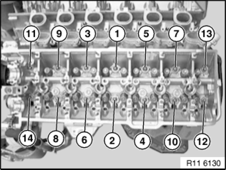 Release cylinder head bolts (3) along line (4) from outside to inside.