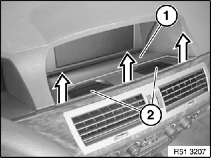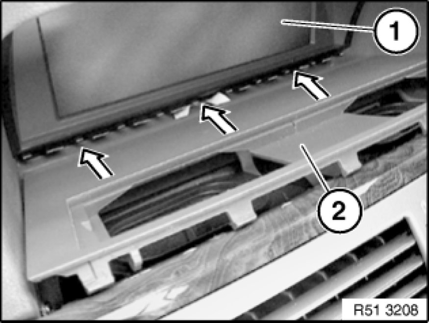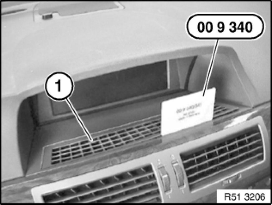 Unclip fresh-air grille (1) with special tool 00 9 340 00 9 340 Disassembly Aid (2 Pieces).