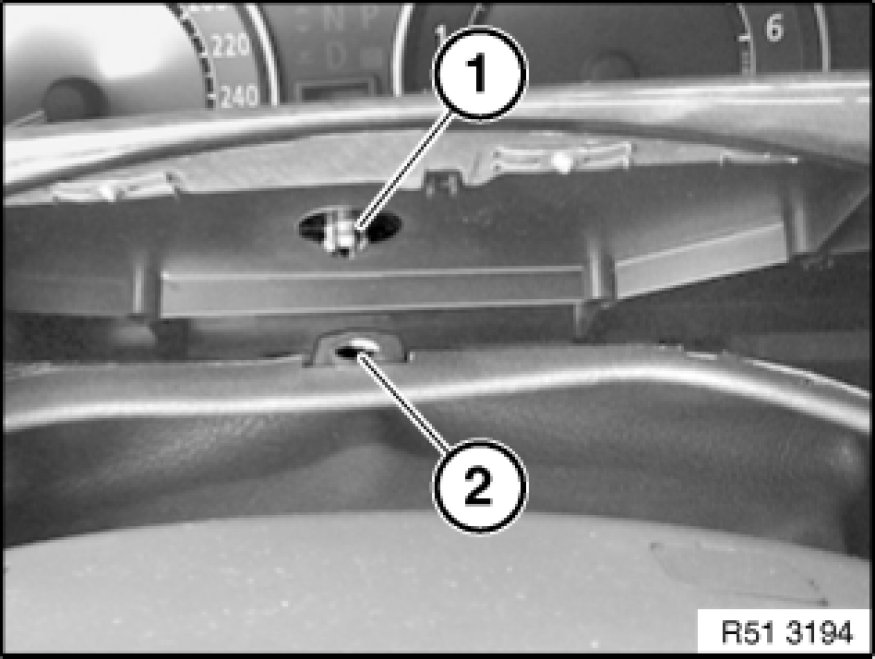 Unclip instrument cluster trim (1) by applying light thumb pressure upwards on wood trim on left and right.
