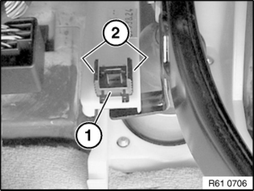 Unclip brake light switch holder (1) at limbs (2) and remove towards rear.