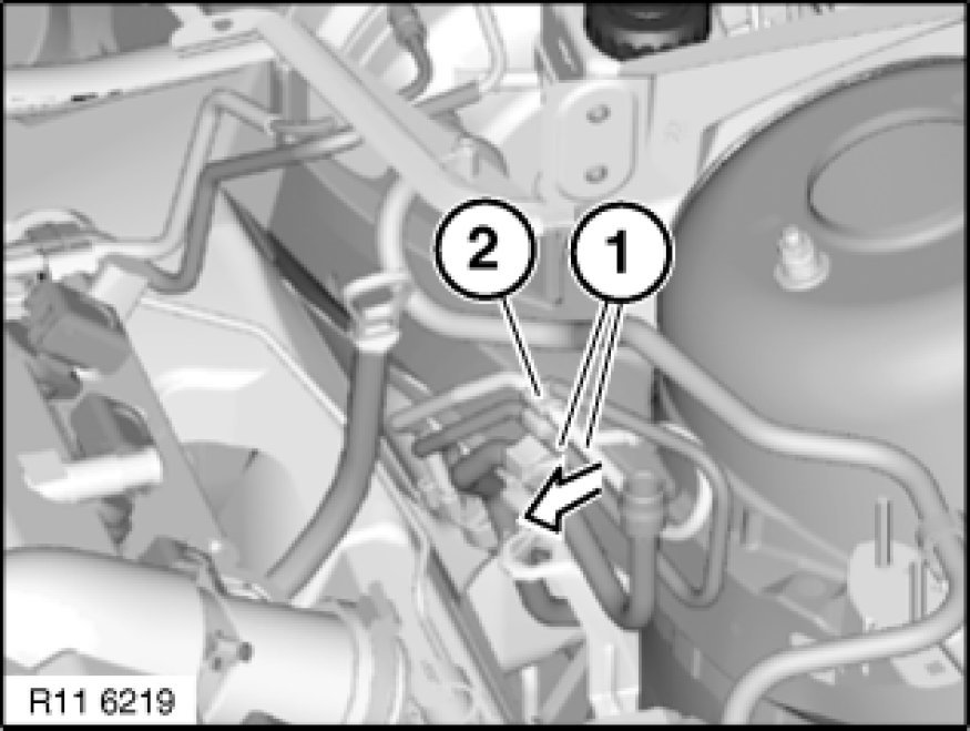Detach fuel lines (1) from holder (2).