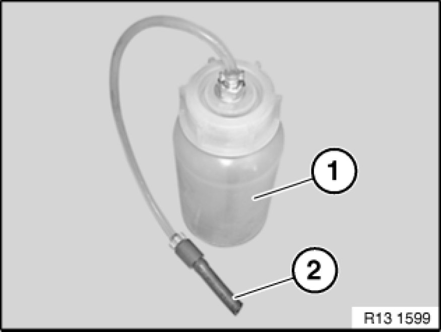 Connect an 8 mm inside dia. fuel hose (2) to special tool (1) 13 0 133 collection container.