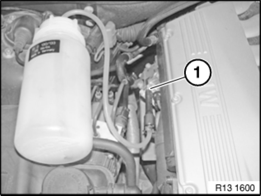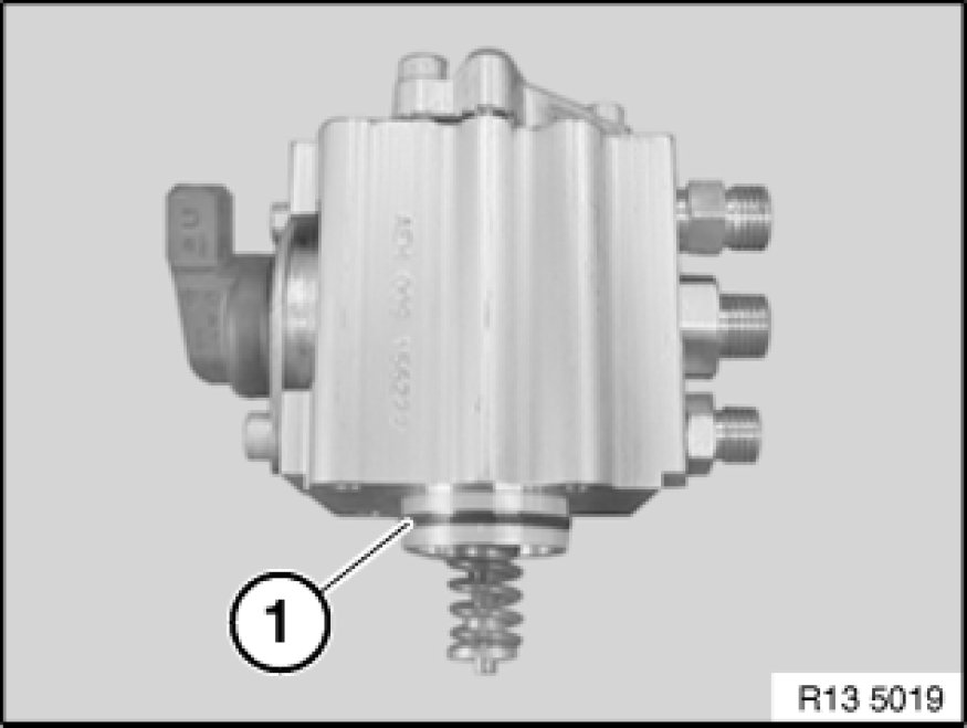 Connect special tool 13 0 133 to ventilation connection (1) of high-pressure pump.
