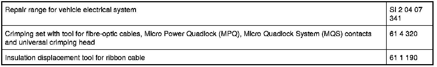 Special tools referred to in the repair instructions below are contained in the following special tool kits: